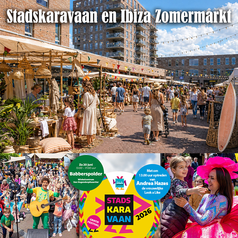 Op zaterdag 20 juni komt de Stadskaravaan naar het plein van Winkelcentrum Van Hogendorpkwartier in de Babberspolder. Dit mooie initiatief van de Stadsgehoorzaal, de gemeente en diverse ondersteunende organisaties belooft een gezellige, feestelijke en zomerse dag te worden voor jong en oud.